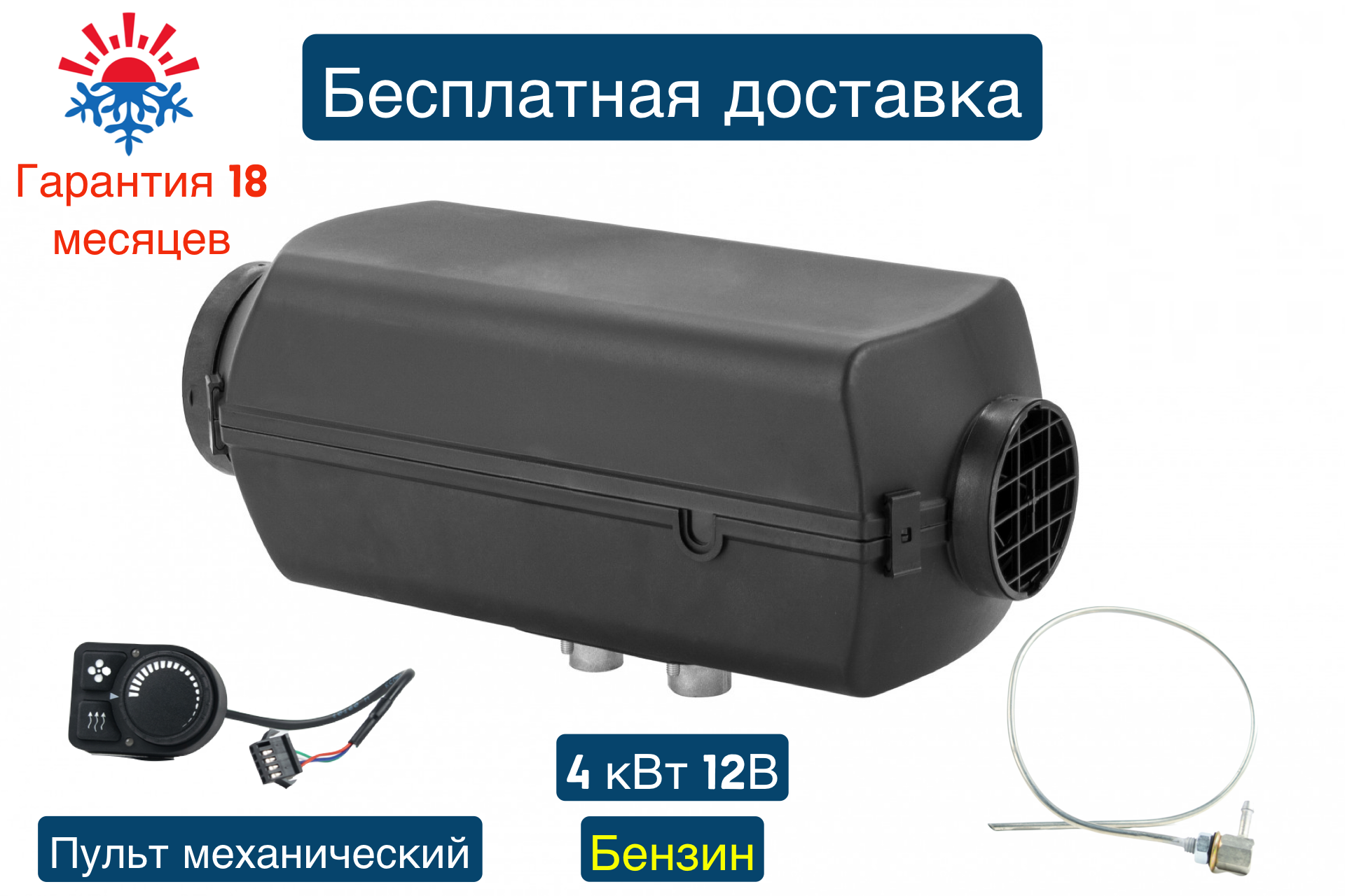 Отопитель воздушный бензиновый Планар 44Б-12В-GP-S (4 киловатта) Монтажный комплект с топливозаборником и механическим пультом ПУ5