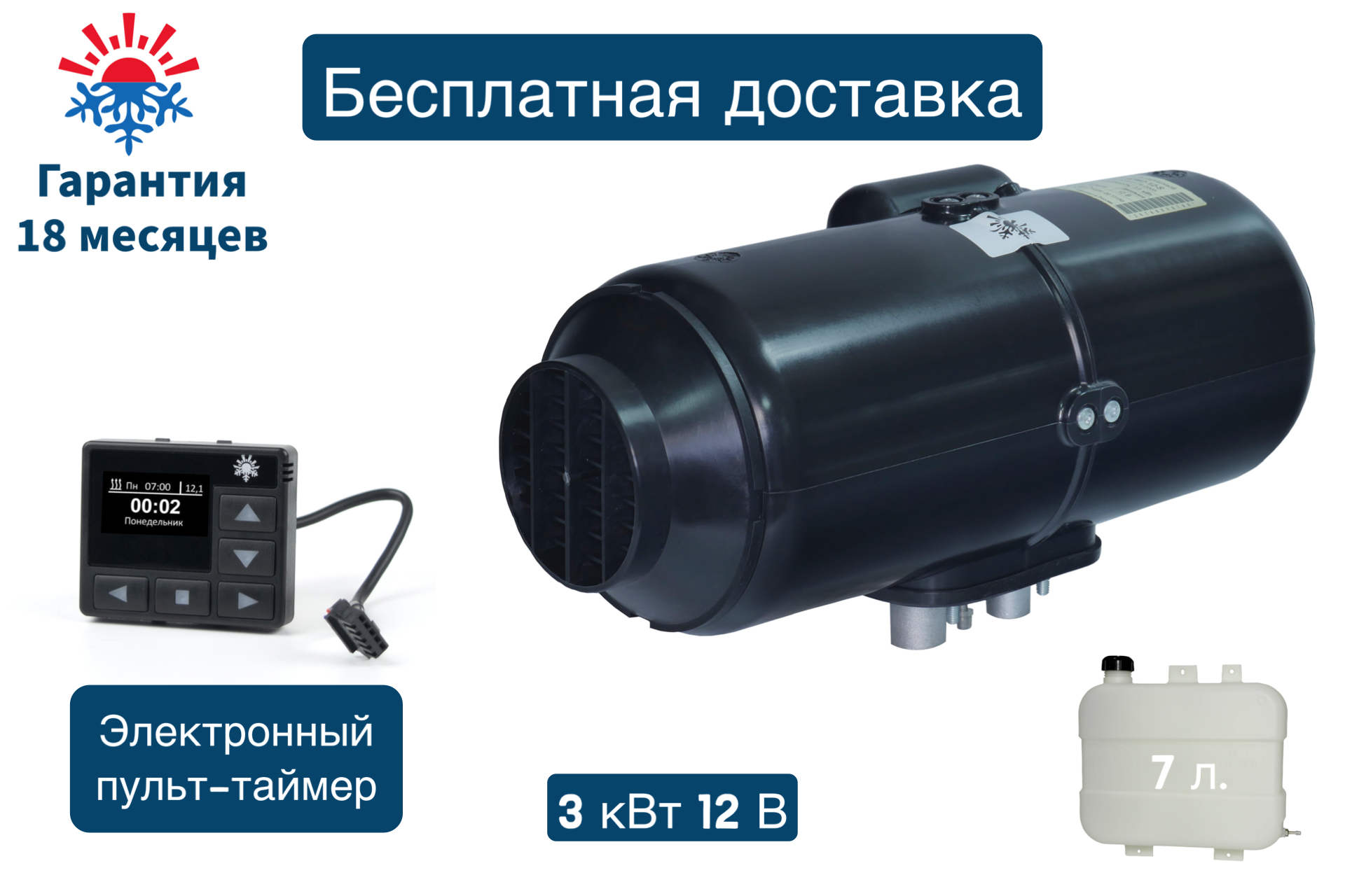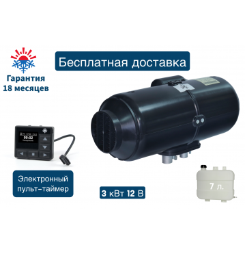 Отопитель воздушный дизельный Планар 4ДМ2-12В-S (3 киловатта) Монтажный комплект с топливным баком 7.5л / Электронный пульт